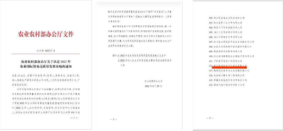 酒泉敦煌種業(yè)百佳食品有限公司被農(nóng)業(yè)農(nóng)村部認(rèn)定為2022年農(nóng)業(yè)國(guó)際貿(mào)易高質(zhì)量發(fā)展基地